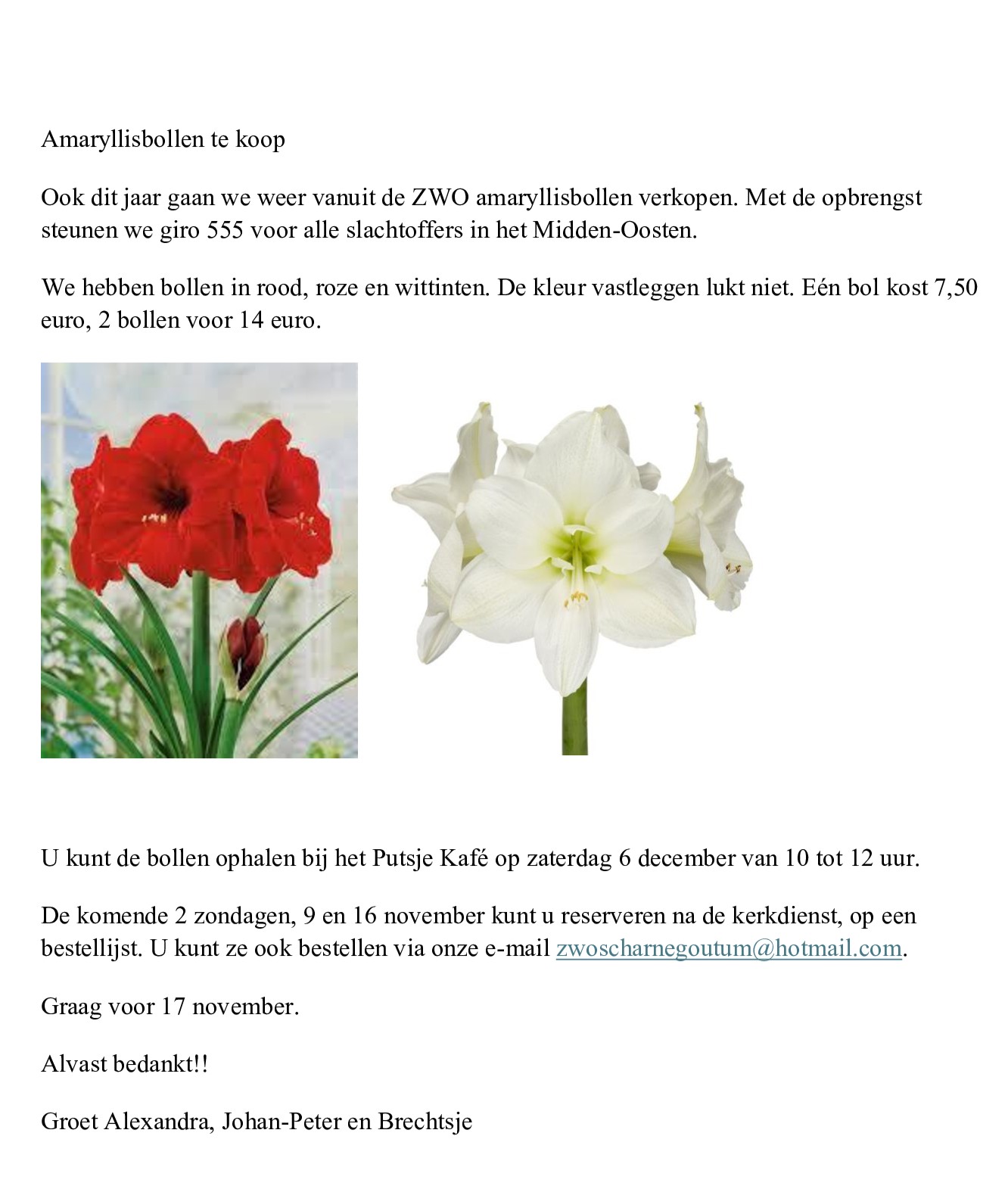 Inleveren oude cartridges, telefoons, postzegels en kaarten Hierbij een herinnering om oude cartridges (inkt en toner), oude telefoons, kaarten en postzegels in te leveren. Deze kunnen in de bak, voorin de hal van de kerk, worden neergelegd. Postzegels en kaarten kunnen in de geschilderde melkbus daarnaast. De opbrengst van deze spullen is voor Kerk in Actie. Hieronder kunt u lezen wat en op wat voor manier spullen ingeleverd kunnen worden:. • Knip postzegels ruim van de envelop. Knip geen postzegels van ansichtkaarten; kaart + postzegel levert meer op dan apart. • Lever alleen ansichtkaarten in, geen dubbele kaarten. Een ansichtkaart is een enkele kaart, met aan de ene kant een afbeelding en aan de andere kant ruimte voor adres en postzegel. Dubbele kaarten hebben geen verkoopwaarde en belanden bij het oud papier. • Ook welkom zijn geboortekaartjes, zelfgemaakte kaarten en kaarten van Anton Pieck, Voor het kind en Stichting Kinderpostzegels in alle maten en vormen. Met vriendelijk groet namens de ZWO Alexandra Spijksma |